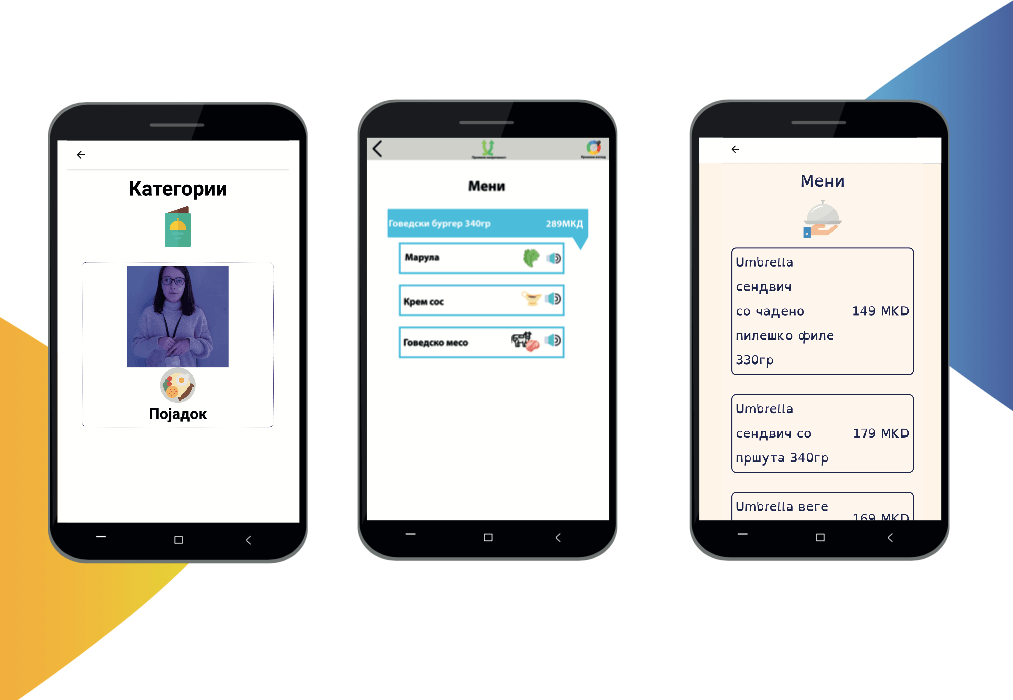 Дигитално ресторанско мени инклузивно и достапно за сите, развиено со помош на принципите за универзален дизајн. Во апликацијата се собрани менија од ресторани, при што се претставени во различни формати, прилагодени за различни нарушувања на видот, слухот, дислексија, интелектуална попреченост. Употребената технологија може да се користи за подобрување на достапноста на информациите во други сектори, вклучувајќи ги образованието и здравството.